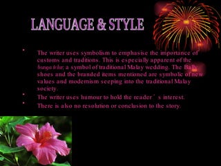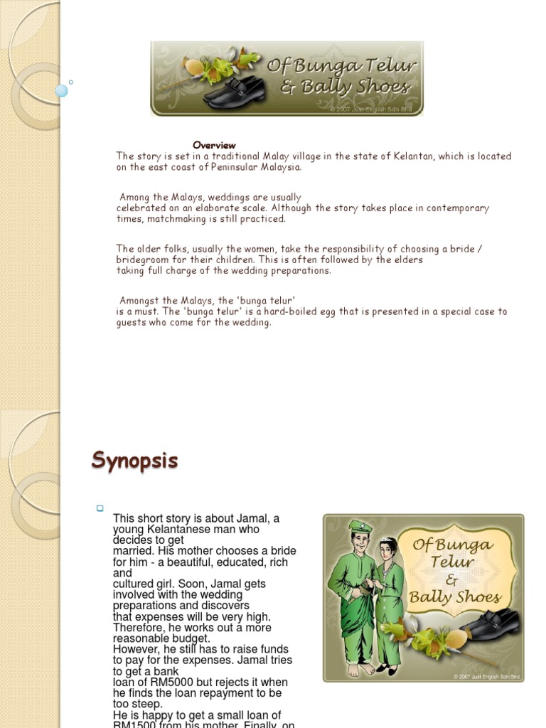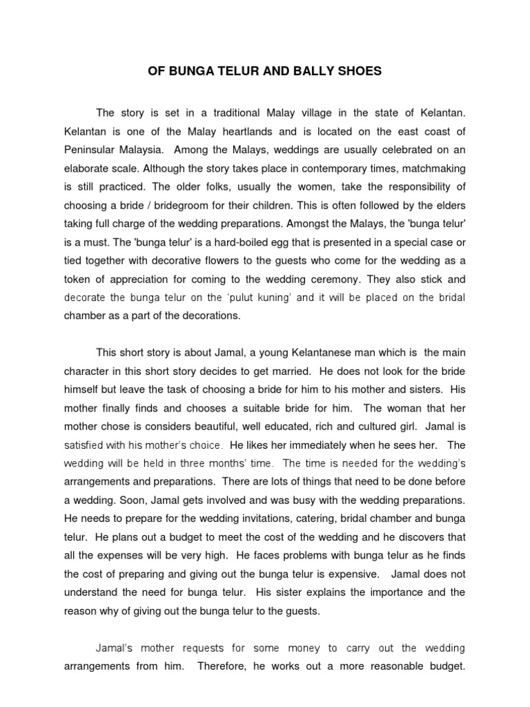 . He is easily bullied and ordered around by the womenfolk. Of Bunga Telur And Bally Shoes. Why is the title called Of Bunga Telur and Bally Shoes.