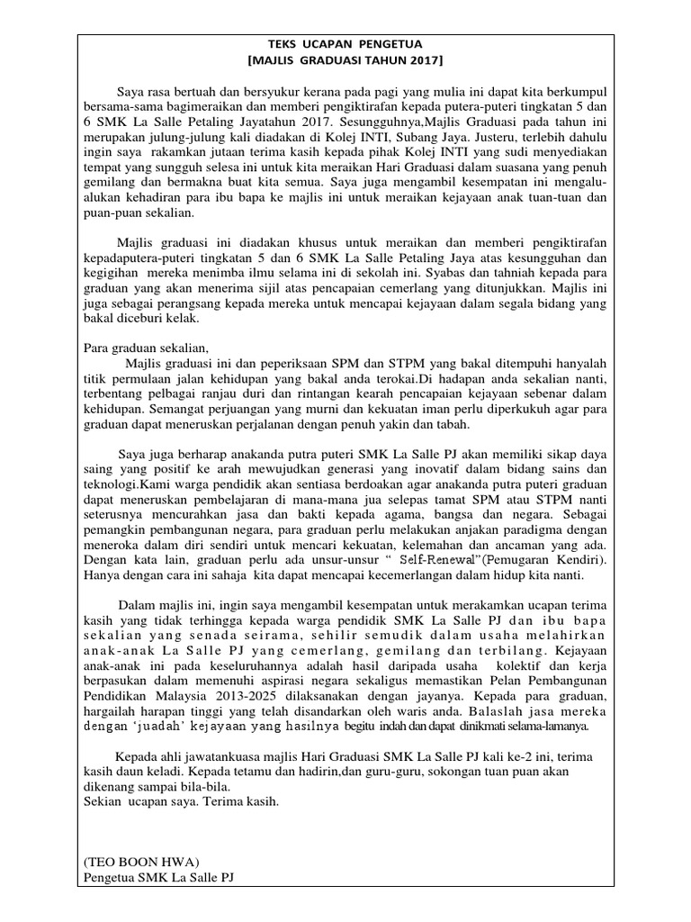 Teks Ucapan Pengetua Graduasi Pdf