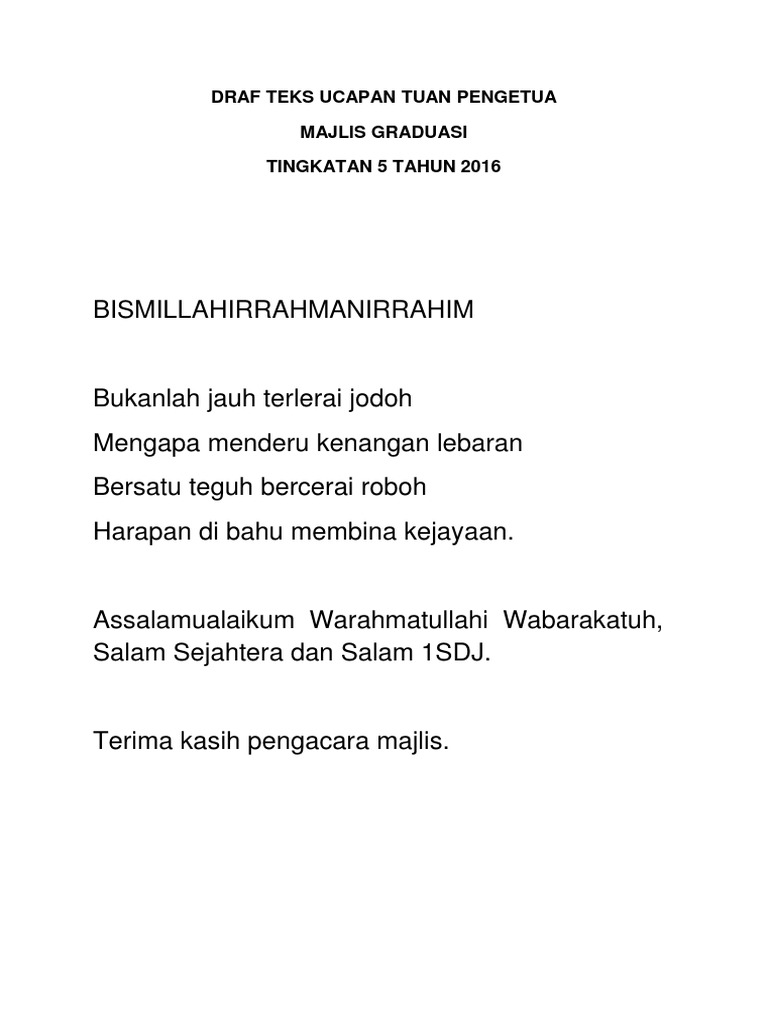 Teks Ucapan Graduasi Ting 5 Pdf