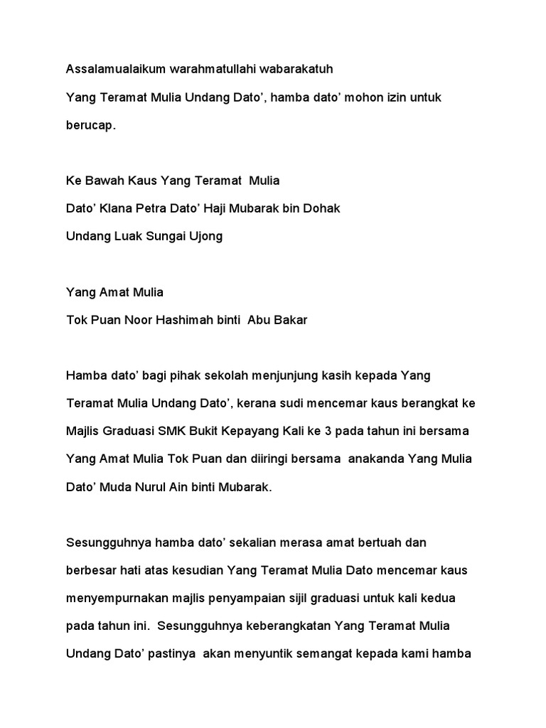 Teks Ucapan Pengetua Majlis Graduasi Pdf