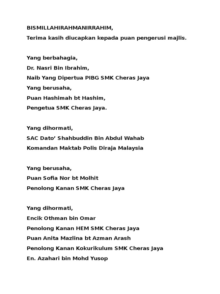 Draf Teks Ucapan Tuan Pengetua Pdf